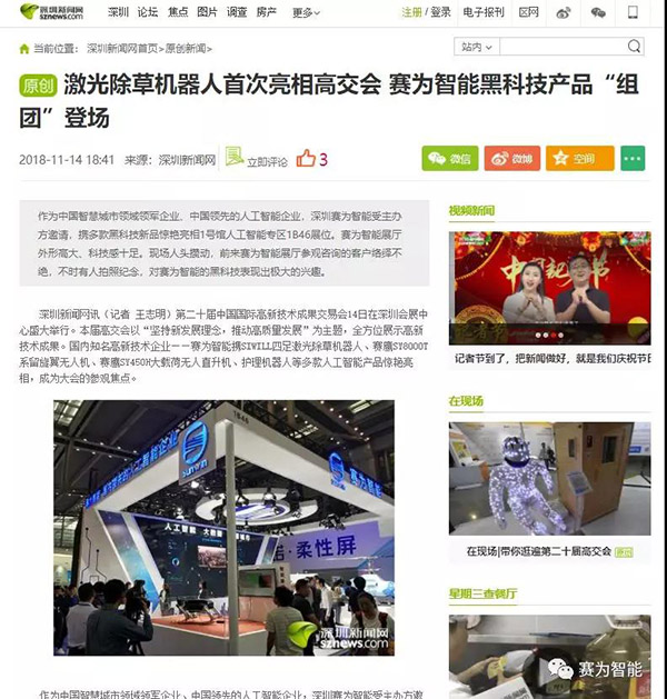 激光除草机器人首次亮相高交会 华体会体育(中国)智能黑科技产品“组团”登场