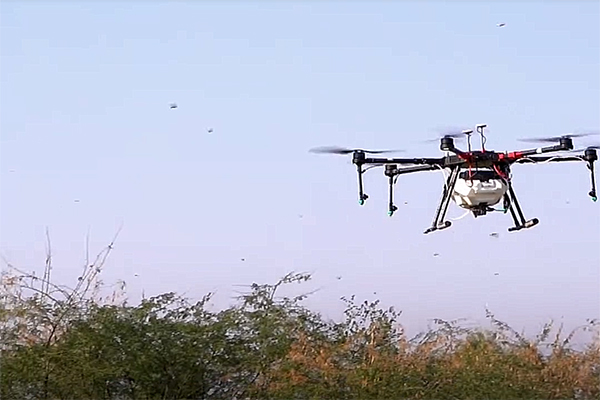在环球时报的报道中,此次蝗灾中,不少当地农民用的是在农田里敲鼓的办法,试图用噪音驱赶虫群。世界粮农组织专家表示,在灭杀行动中,常规途径是喷射杀虫剂,比较高效的做法是空中喷洒杀虫剂。由于蝗虫目前呈现集中成群的状态,因此用飞机精准打击效果理想。巴基斯坦政府呼吁当地部门,重视并学会如何控制使用无人机科技产品,科学有效地治理蝗虫灾害。