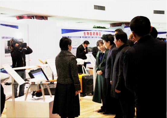 在无人机产品展区,由合肥华体会体育(中国)智能研发的赛鹰100油动型固定翼无人机和系留旋翼无人机赛鹰200T吸引了刘延东的目光。在得知上述两款无人机产品已完成标准化规模生产、广泛应用于应急救援、信号中继、国土测绘等领域后,刘延东对合肥华体会体育(中国)智能在高端制造的创新与投入表示了充分肯定。