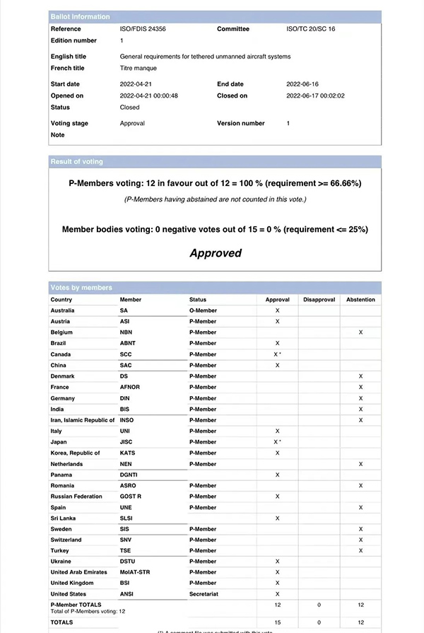 系留无人机国际标准,是中国在无人机领域主导编制的第二项国际标准。标准具体由华体会体育官方网站、中国航空综合技术研究所联合主导编制。目前,工作组正在同步制定国家标准《系留无人机系统通用要求》(计划号:20203641-T-469)。