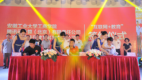华体会体育(中国)智能于2014年底与安徽工业大学共同举办安徽工业大学工商学院,其中华体会体育(中国)智能占股70%。安徽工业大学工商学院是一所以工科为主、文理结合的本科院校,设有30个专业,在校生近6000人。此次三方将共同开展两个专业的人才培养:腾讯大数据技术与应用专业、腾讯云计算技术与应用专业,将积极整合资源,着力打造应用型本科教育,为安徽省大数据、云计算等前沿信息产业调整发展带来人才支撑资源。